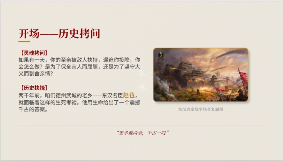 “两千年前,咱们德州武城的一位老乡,就面临着这样的生死抉择。他用生命给出了答案——他就是东汉名臣赵苞。”