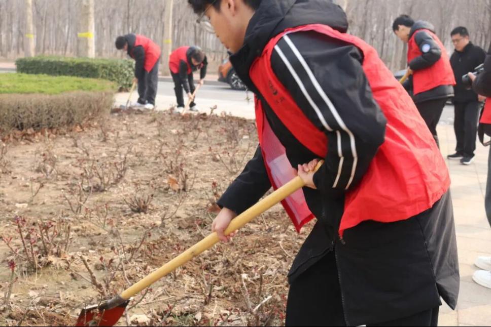 为深入践行习近平生态文明思想,进一步增强师生环保意识,美化校园环境,3月11日,汽车工程系联合经济管理系携手开展了以 “植”此青绿 共“树”未来”“寓”梦德职”为主题的志愿服务活动。