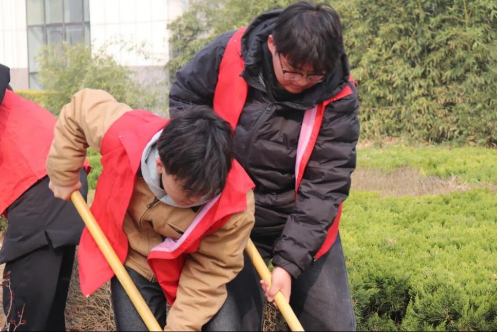 活动当天,来自两个系的学生志愿者身着红马甲,准时集结在校园绿化带区域。与传统的植树栽花不同,本次活动的重点在于铲除树木周围的杂草与杂根。由于春季气温回升,杂草生长迅速,不仅影响校园美观,更会与树木争夺养分。志愿者们手持铲子,分工协作,干劲十足。经过同学们的辛勤劳作后,原本杂草丛生的绿化区域变得干净整洁,一棵棵树木在春风中更显精神抖擞,重新焕发出勃勃生机。