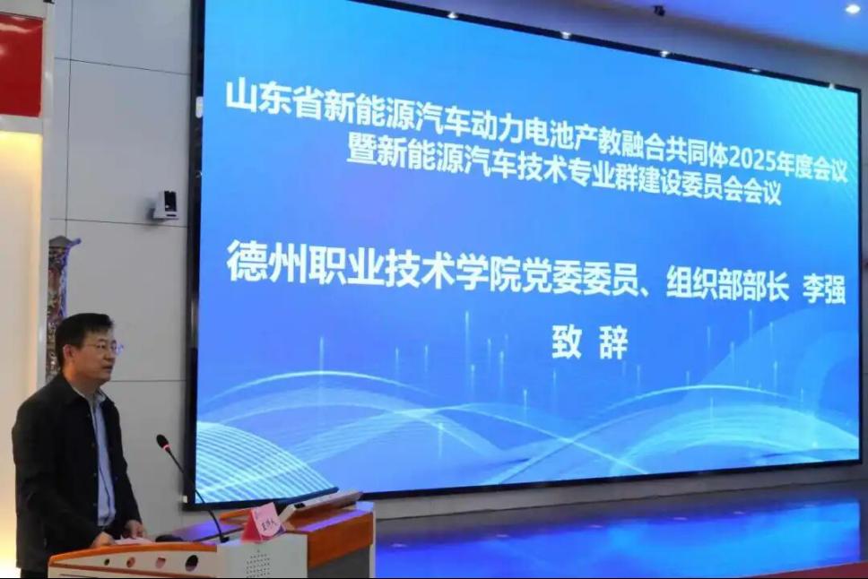 11月20日,山东省新能源汽车动力电池产教融合共同体2025年度会议暨新能源汽车技术专业群建设委员会会议在德州职业技术学院隆重召开。来自高校、行业协会、龙头企业的专家学者、企业代表齐聚一堂,以"低碳引领、协同创新"为主题,共商新能源汽车产业人才培养与技术创新发展大计。德州职业技术学院党委委员、组织部部长李强出席会议并致辞,德州职业技术学院汽车工程系主任艾锋主持会议。