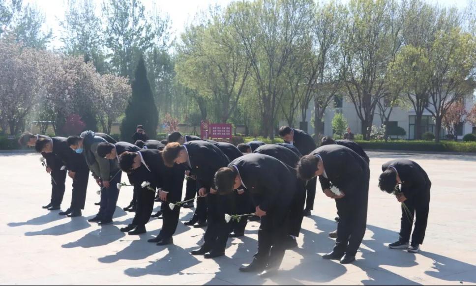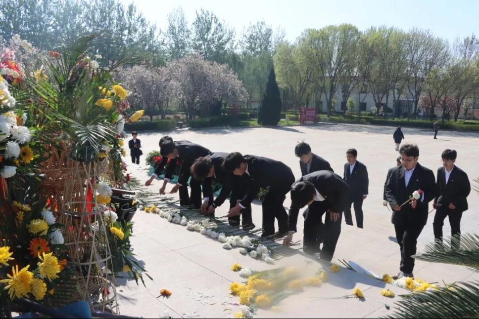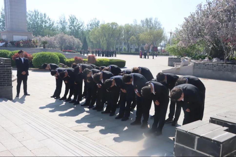 全体师生整齐肃立于革命烈士纪念碑前,向为争取民族独立和人民解放事业英勇献身的抗战英烈及所有革命先烈默哀致敬。王猛老师与学生代表共同向纪念碑献花,全体师生行三鞠躬礼,表达对先烈们的无限追思与崇高敬意。