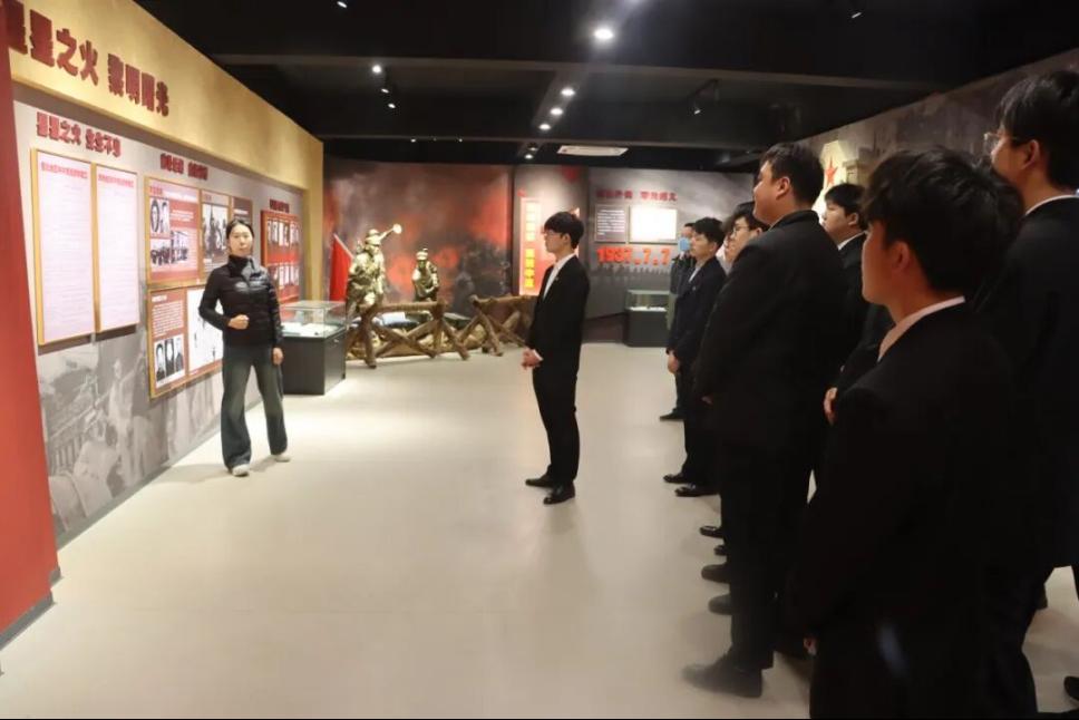祭扫仪式结束后,全体师生在陵园讲解员的引导下,缓步走进烈士纪念馆的“抗战专题展区”,集中听取了关于抗日战争时期的详细讲解。在展区内,一幅幅泛黄的历史照片、一件件斑驳的抗战实物、一份份珍贵的文献史料,无声地诉说着那段烽火连天的岁月,最后师生们依次向烈士墓敬献鲜花,并瞻仰了抗战烈士名录墙。